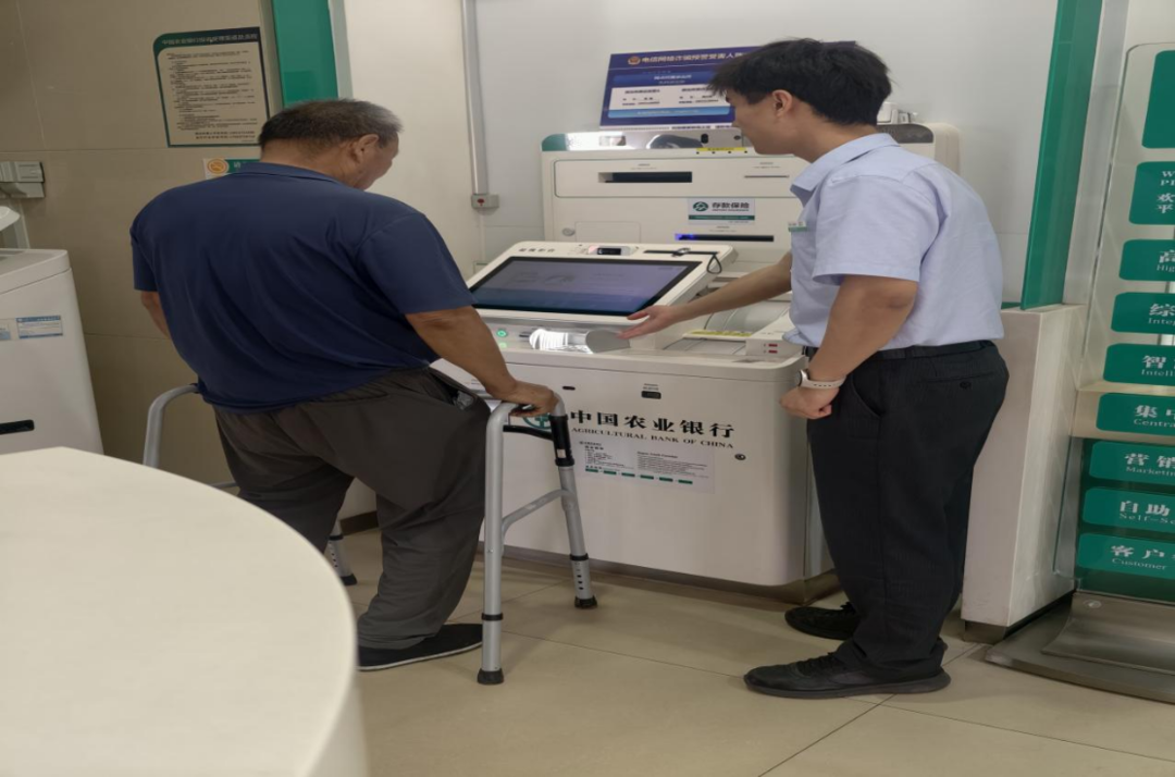 他小心搀扶老人走到自助查询机前,耐心地引导操作。老人的动作有些迟缓,手指也不太灵便,但大堂经理始终保持着温和的笑容,俯身细致讲解每一个步骤。他特意放慢语速,一遍遍重复重点,仿佛时间在此刻也变得温柔。终于,余额信息成功显示在屏幕上,老人浑浊的眼中泛起释然的光。
