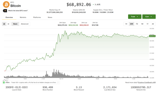 比特币交易价格目前接近69000美元,自去年10月峰值(126199美元)水平已下跌约45%。若进一步跌至31000美元的水平,意味着较当前水平还要再跌约55%。