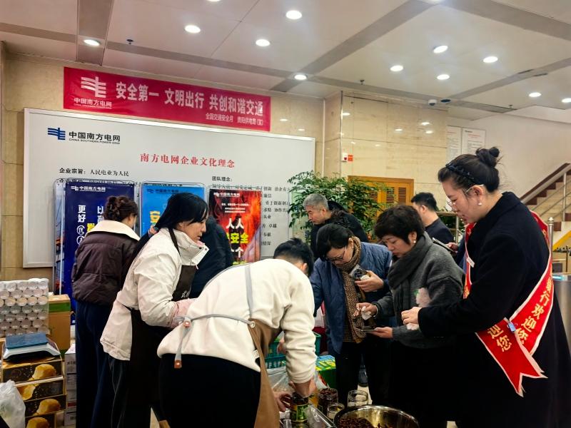 “这个车厘子礼盒比外面优惠不少,我赶紧订了两盒!”中午休息时间,花溪供电局职工李女士在年货展台前一边扫码付款一边笑着说。